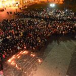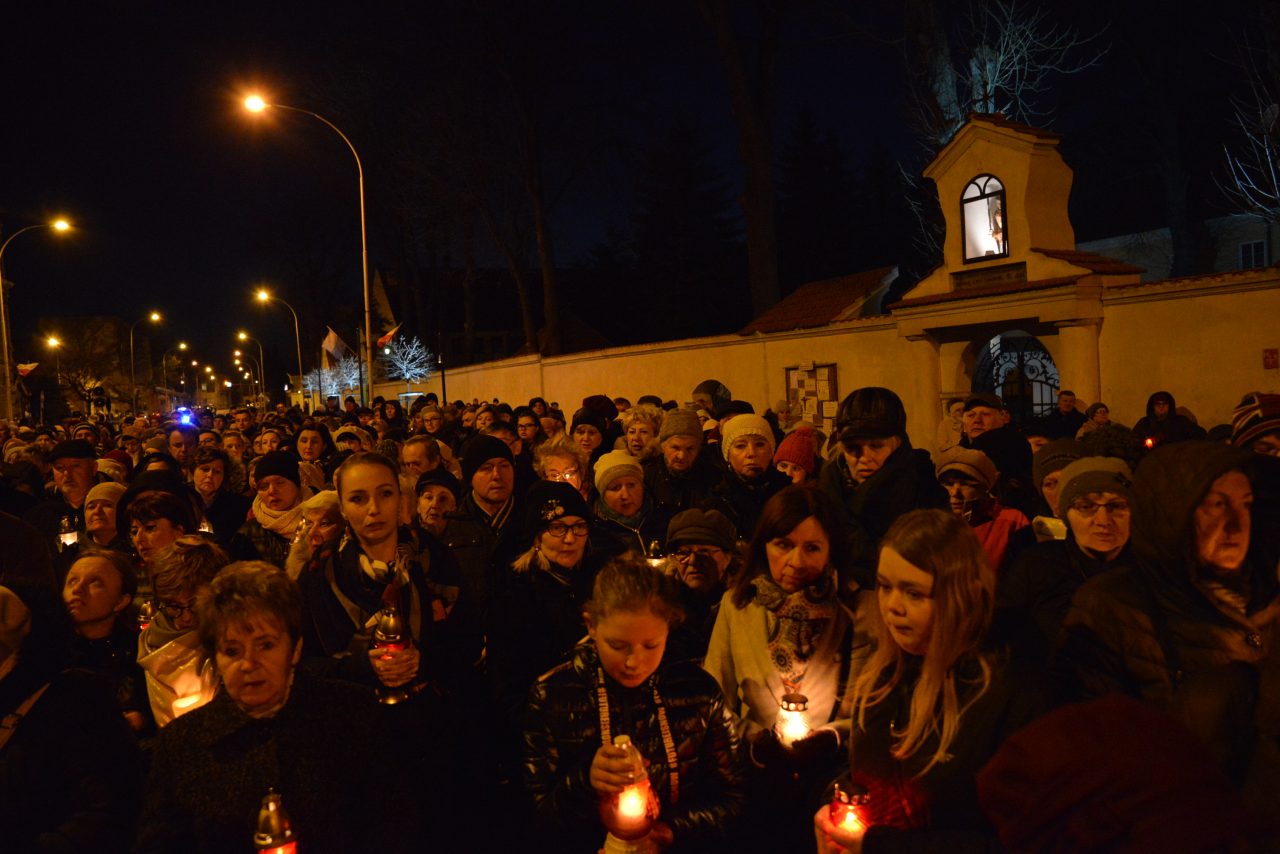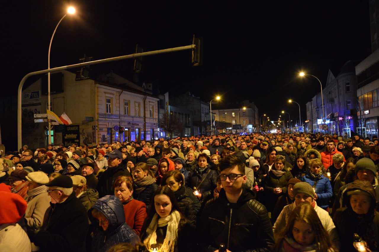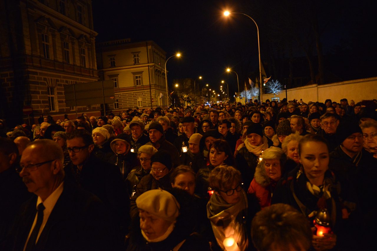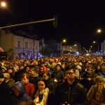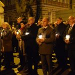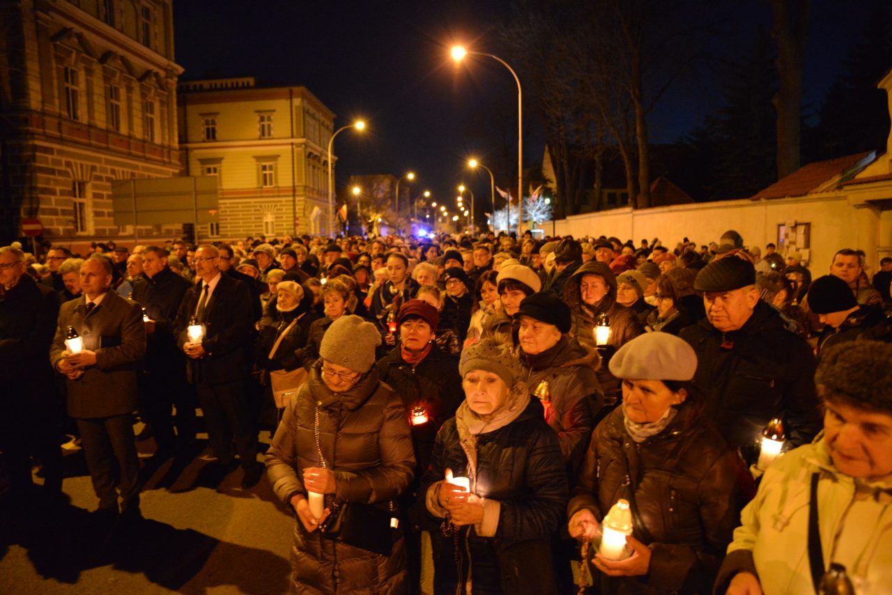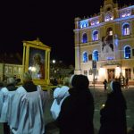 Nabożeństwo Światła z relikwiami Św. Jana Pawła II obejmowało rozważanie tajemnic światła Różańca Świętego przez duszpasterzy jarosławskich parafii, siostry zakonne oraz zgromadzonych podczas przemarszu, który wyruszył o godz. 20:00 sprzed kościoła oo. Franciszkanów na jarosławski Rynek. Hołd Największemu Polakowi złożyła w tym roku wyjątkowo imponująca liczba uczestników.