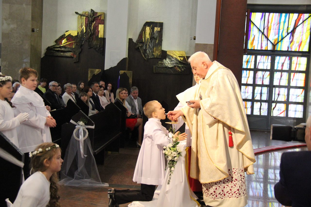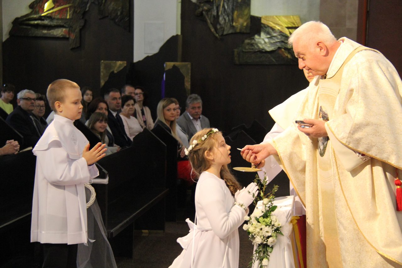 Dzisiaj w naszej parafii był dzień I Komunii Świętej dla 13 dzieci klas trzecich ze SP nr 10. Polecamy ich gorąco w naszych modlitwach i modlimy się, aby wytrwały w przyrzeczeniach i znalazły dobry przykład w świecie dorosłych.