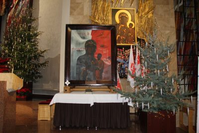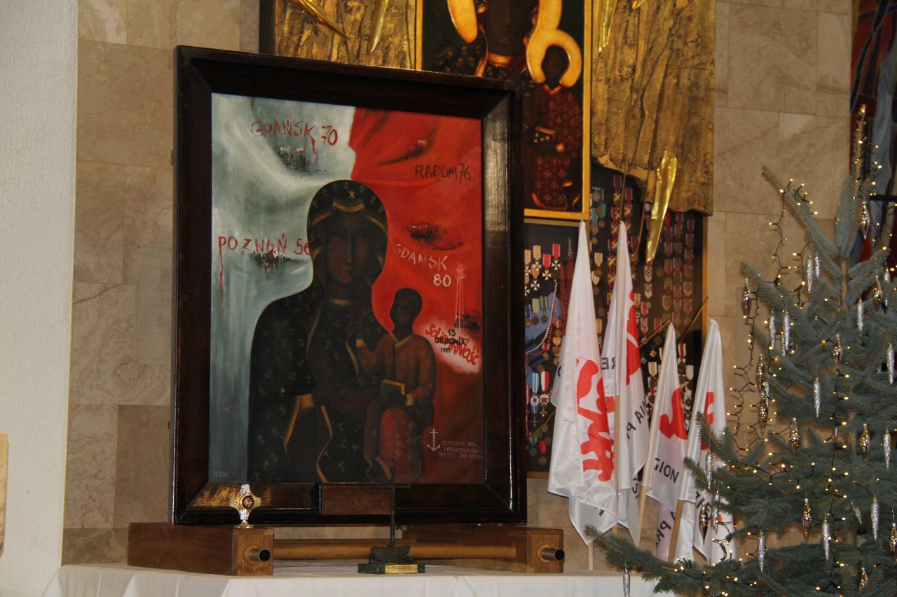 Obraz MB Robotników Solidarności oraz relikwie bł. ks. Jerzego Popiełuszki w naszym kościele