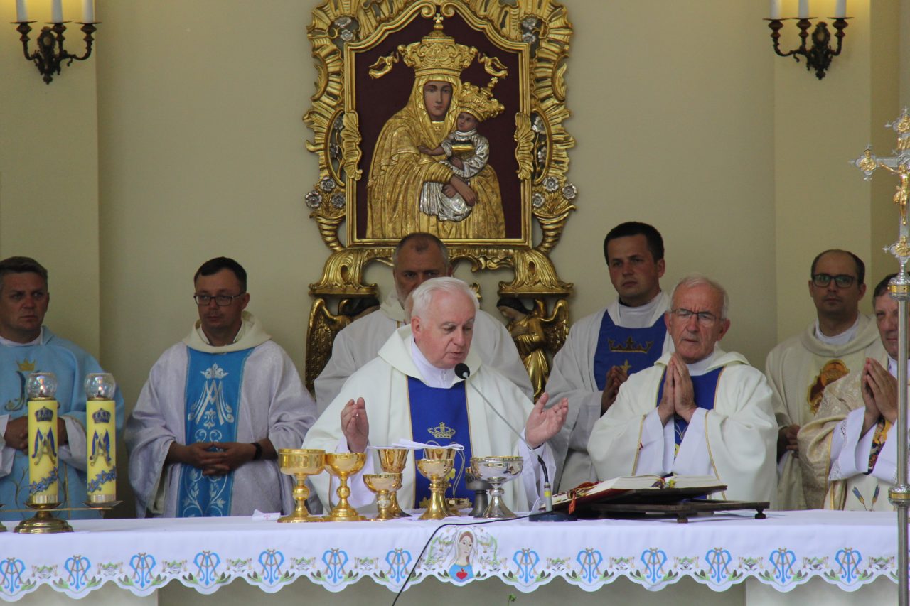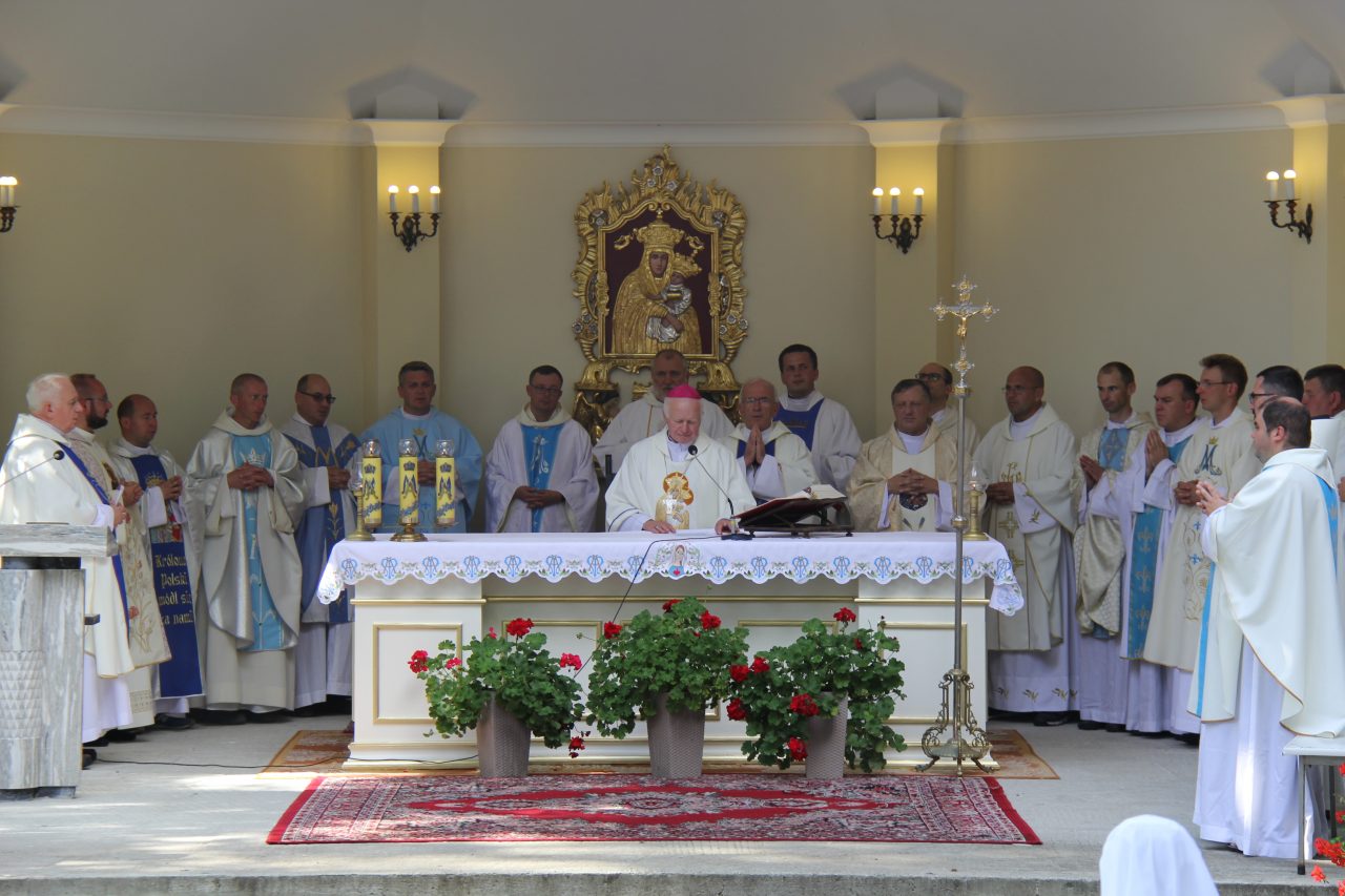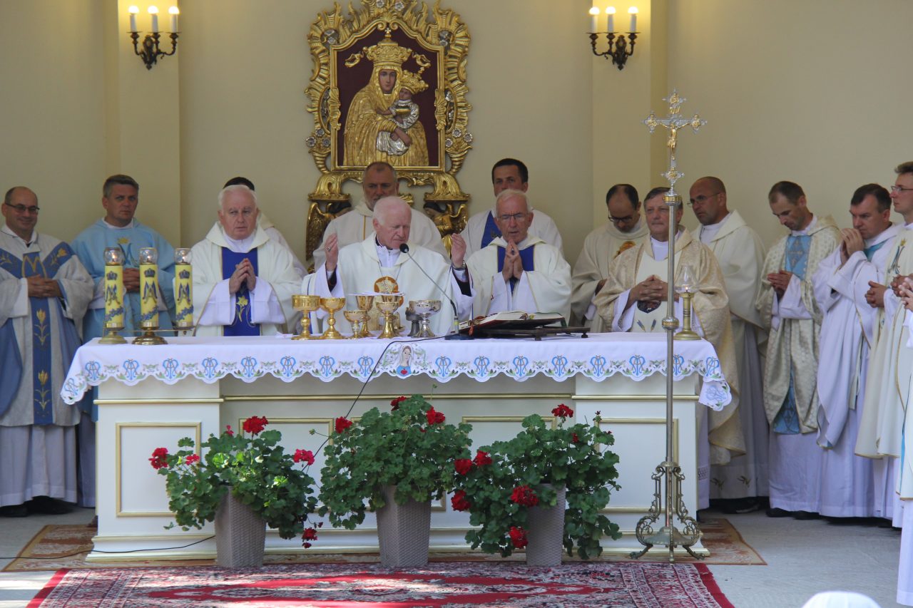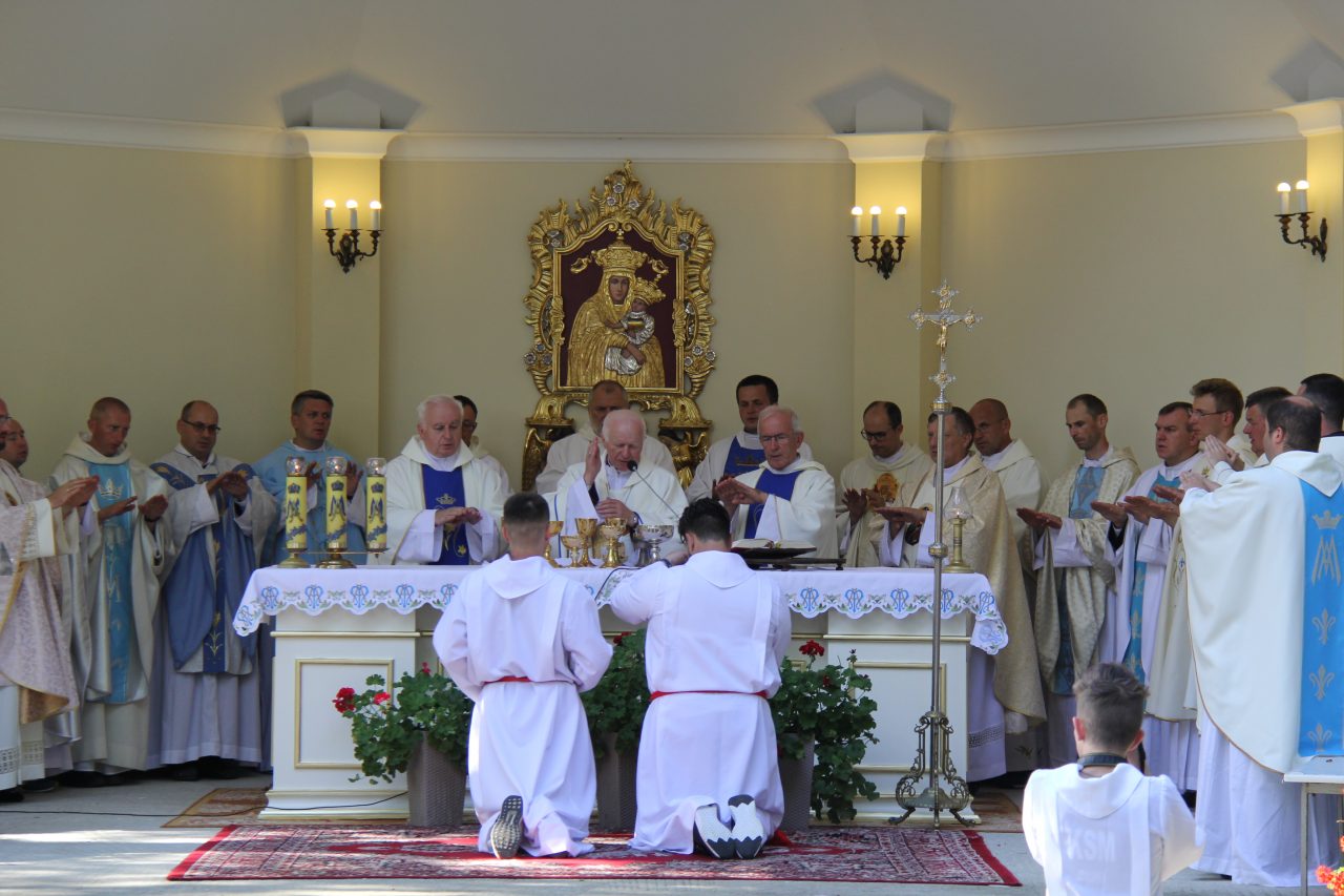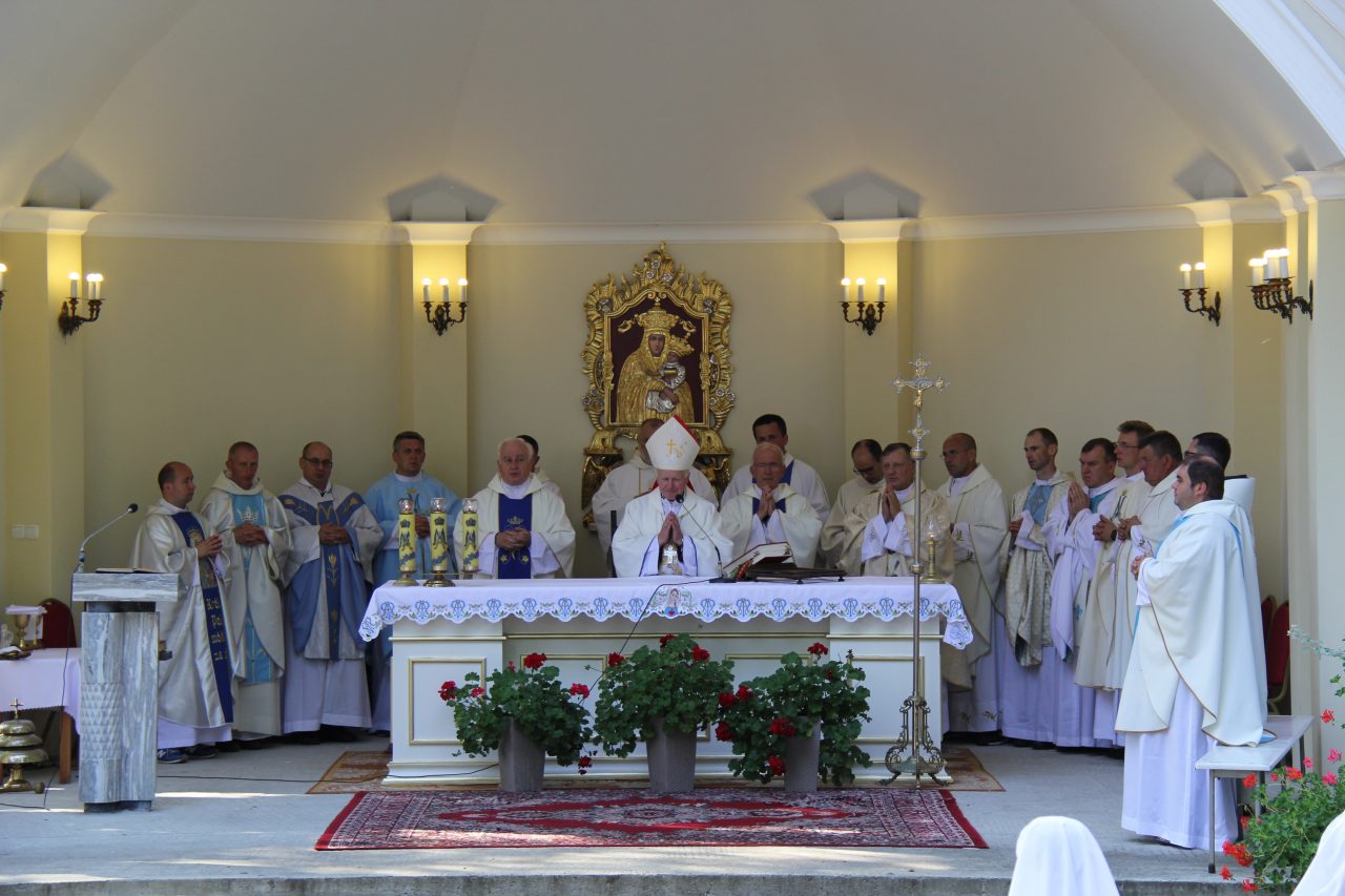 Na placu w Jodłówce było już ponad dwa tysiące osób. Mszy św. przewodniczył Abp Adam Szal w asyście kilkunastu księży. Całość koordynował ks. prałat Andrzej Surowiec – archiprezbiter jarosławski.
