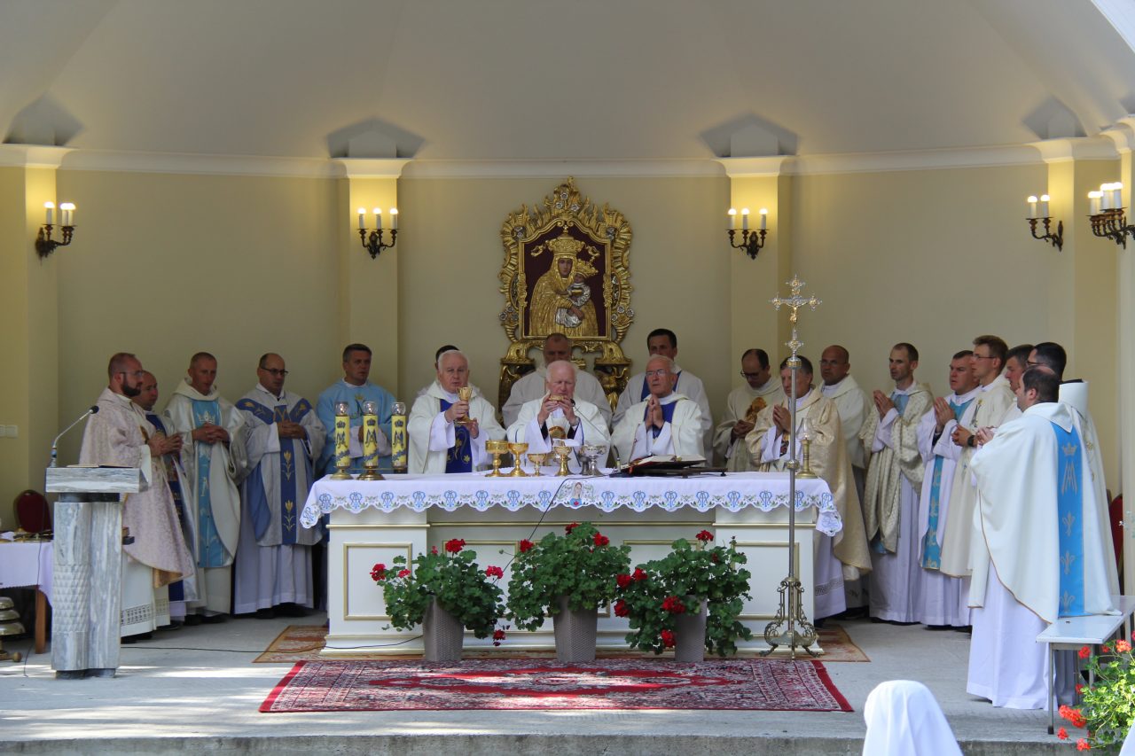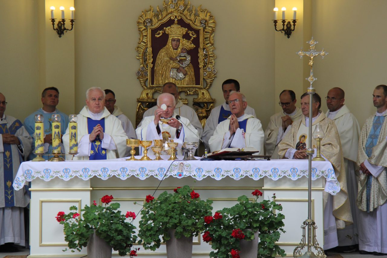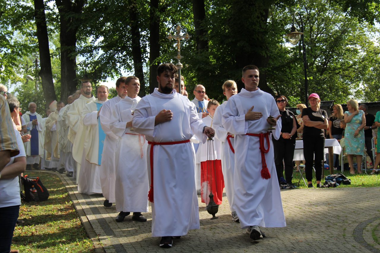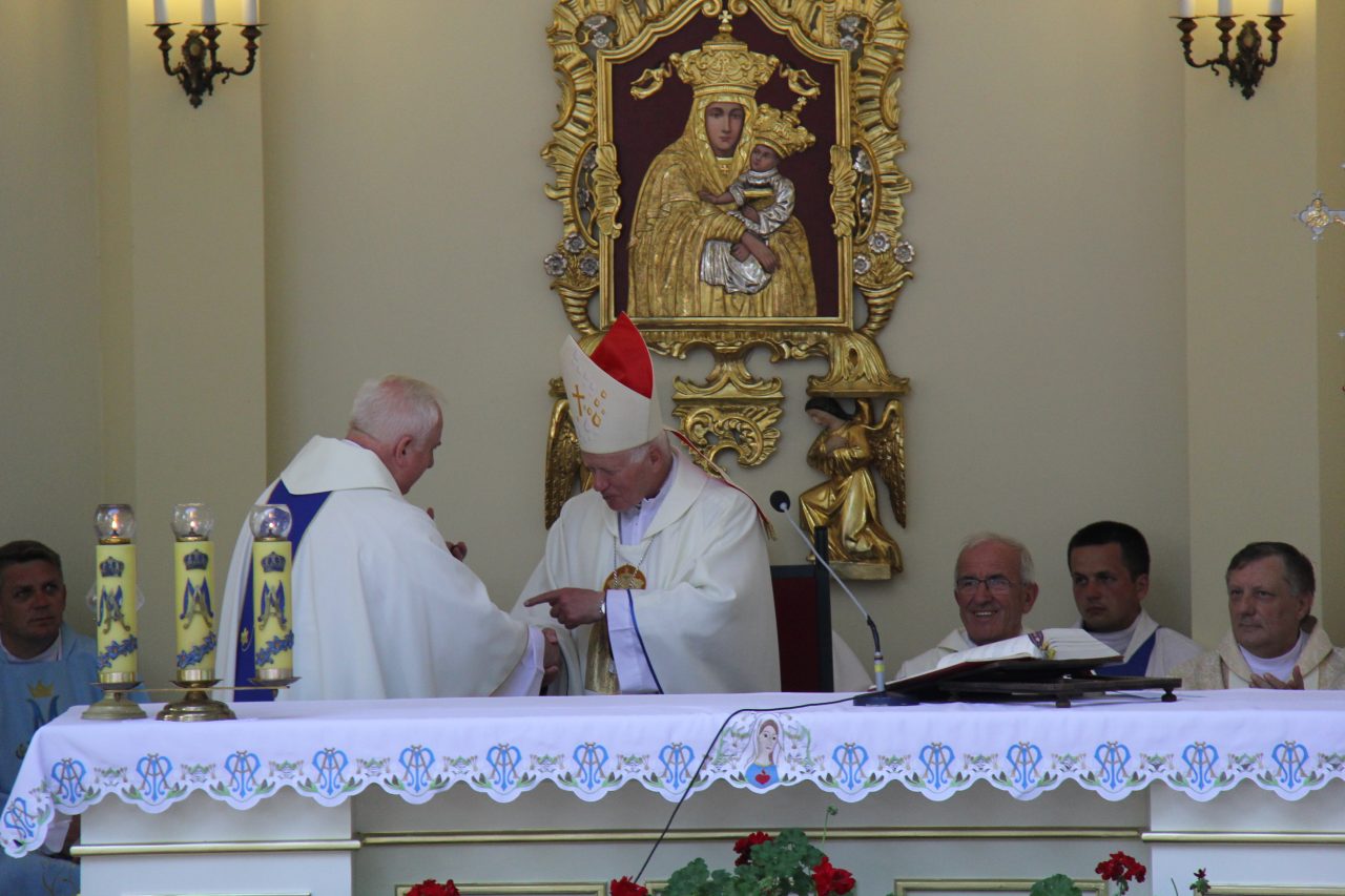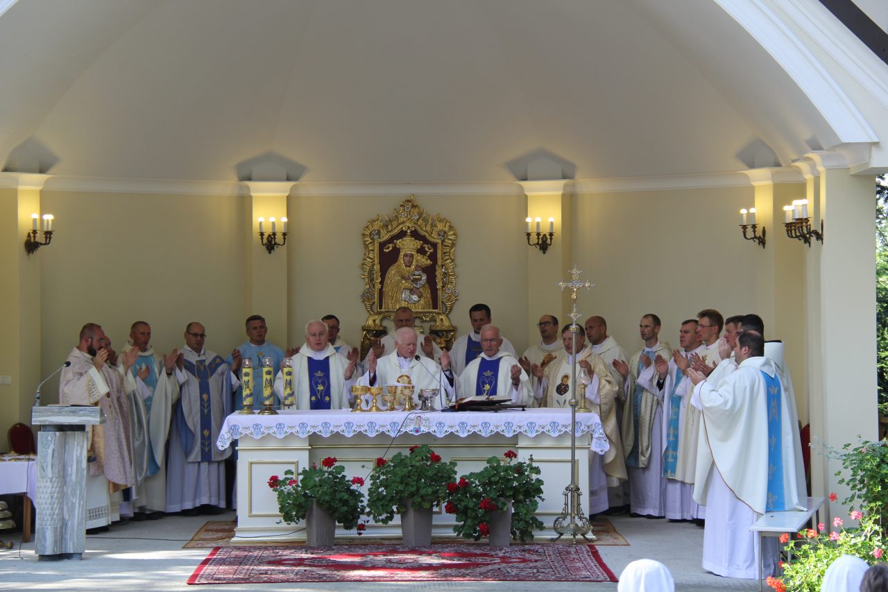 Na placu w Jodłówce było już ponad dwa tysiące osób. Mszy św. przewodniczył Abp Adam Szal w asyście kilkunastu księży. Całość koordynował ks. prałat Andrzej Surowiec – archiprezbiter jarosławski.