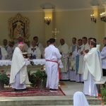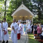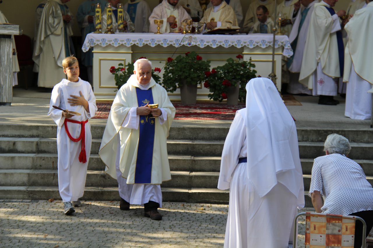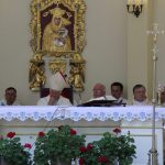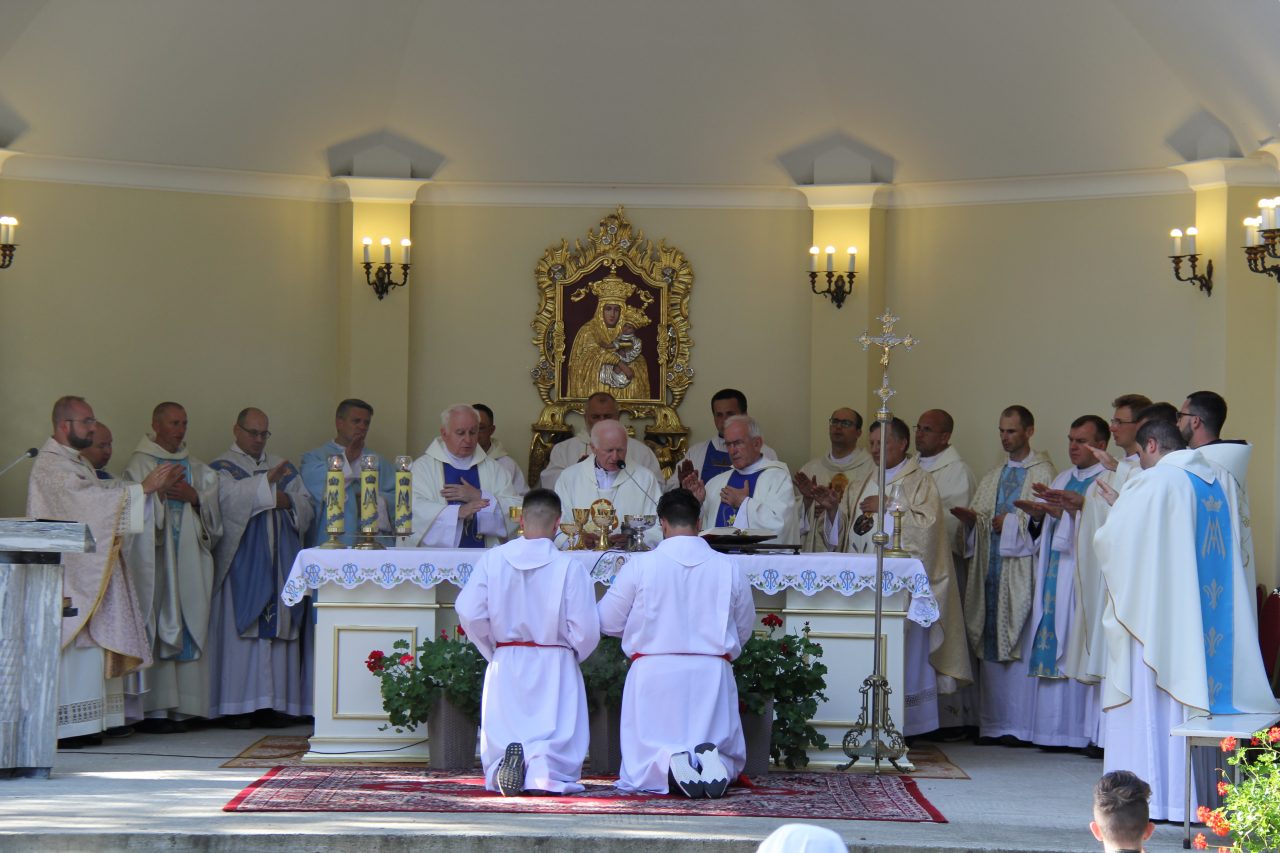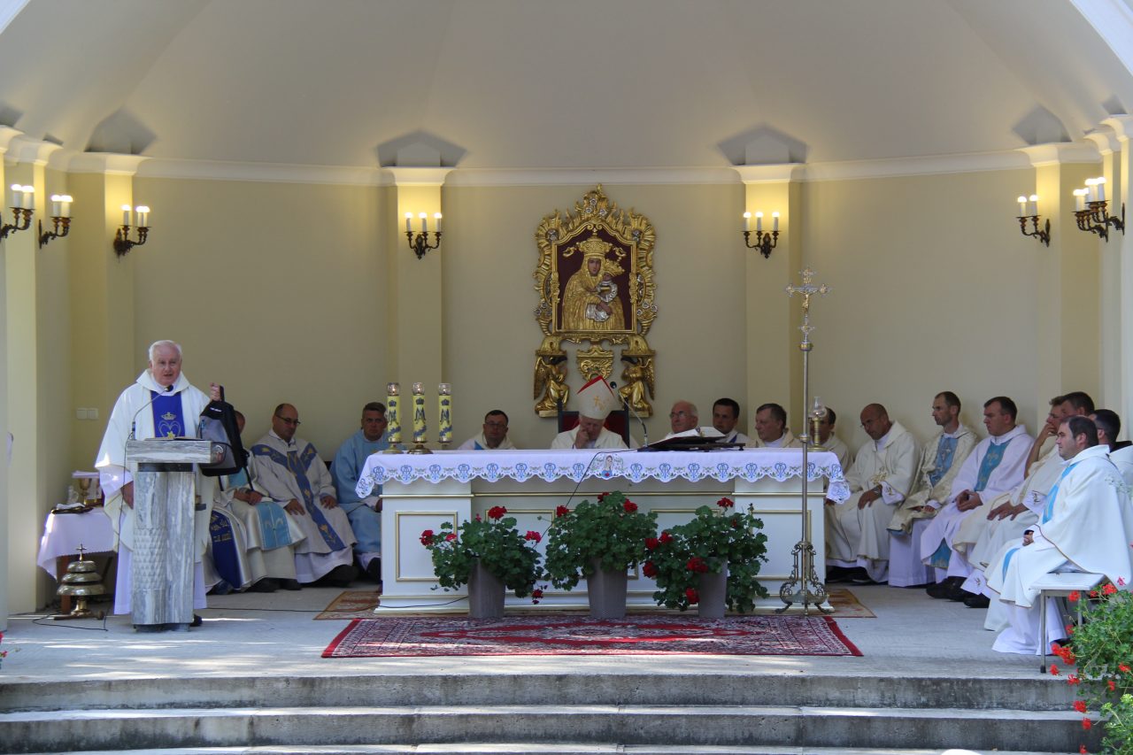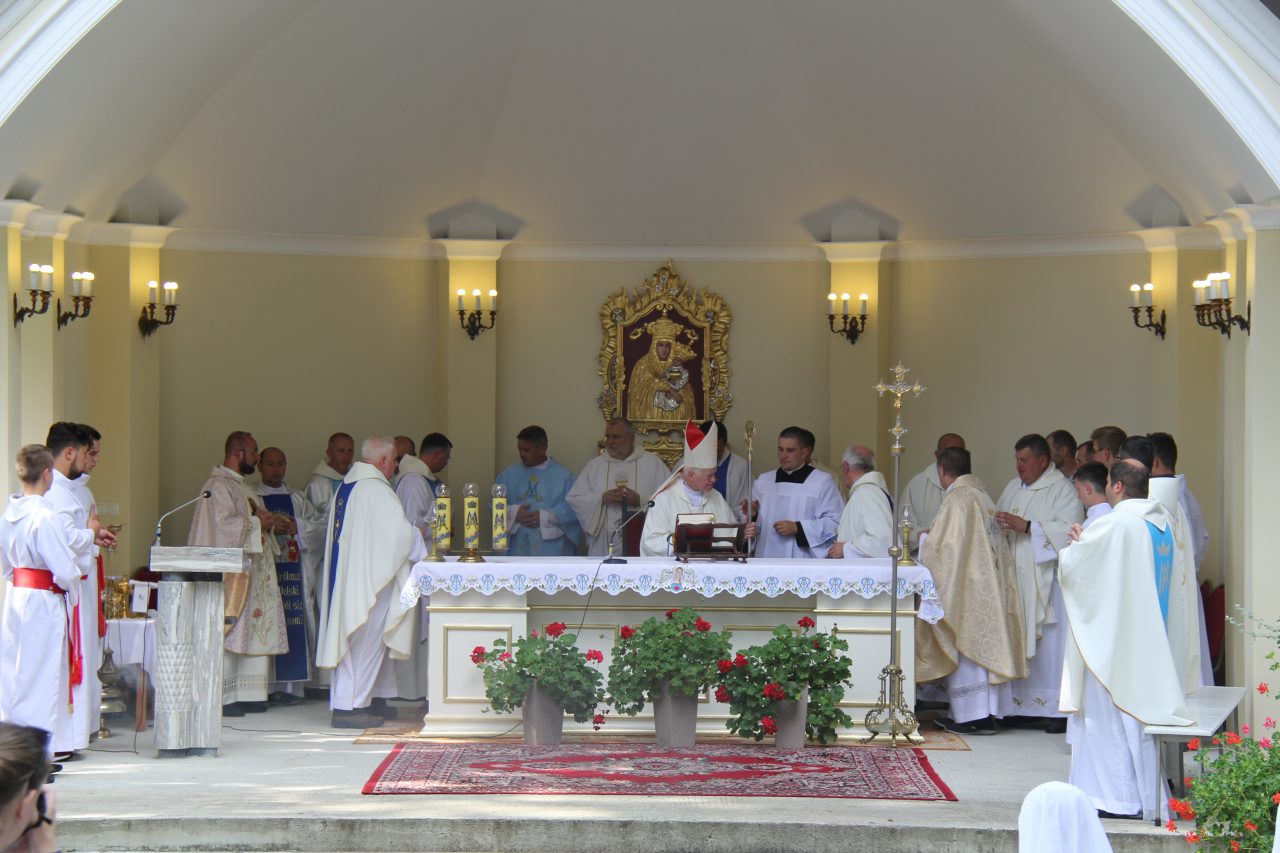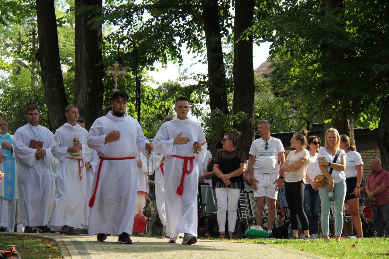 Na placu w Jodłówce było już ponad dwa tysiące osób. Mszy św. przewodniczył Abp Adam Szal w asyście kilkunastu księży. Całość koordynował ks. prałat Andrzej Surowiec – archiprezbiter jarosławski.