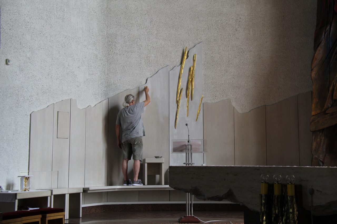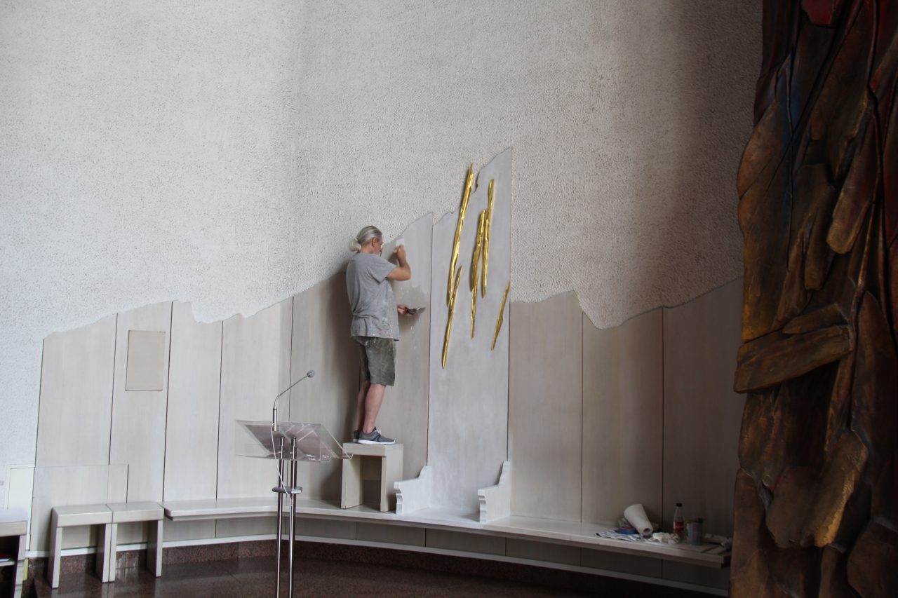 Malowanie boazerii przy głównym ołtarzu