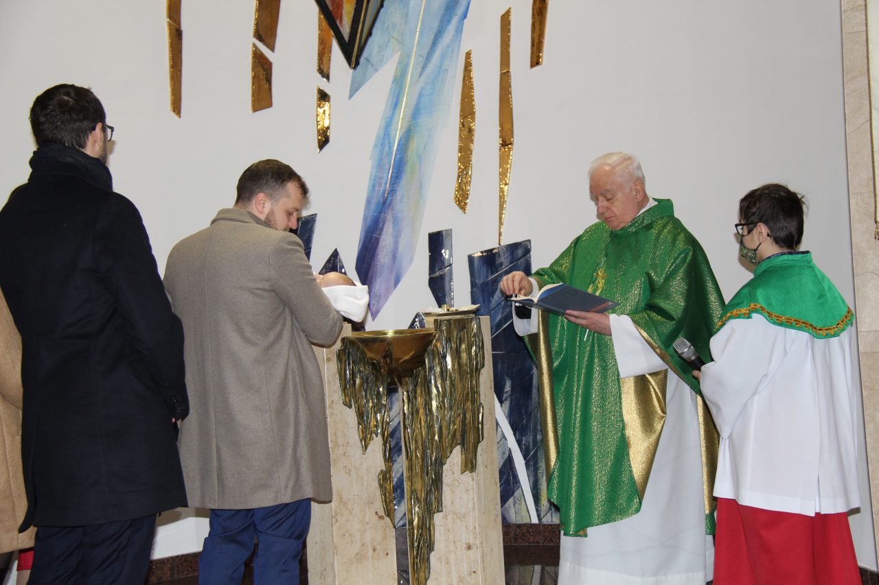 Pierwszy chrzest w odnowionej chrzcielnicy