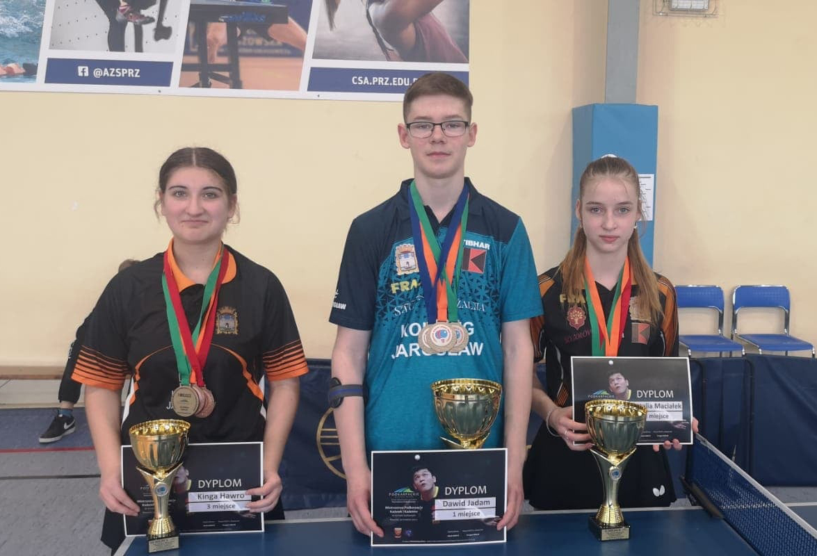 W grze pojedynczej Natalia Maciałek wywalczyła srebro, a Kinga Hawro brąz. Wspólnie sięgnęły po złoto w deblu. W mikście brązowy medal wywalczyła Kinga Hawro w parze z Jakub Świniuch z Politechniki Rzeszów. W turnieju wojewódzkim uczestniczył także Alan Zieliński. Za tydzień nasi pingpongiści startować będą w Białymstoku w Ogólnopolskiej Olimpiadzie Młodzieży – Mistrzostwach Polski Kadetów.
