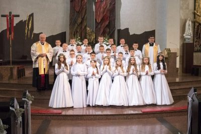 Dziś w naszej parafii dzień I Komunii Świętej dla 26 dzieci klas trzecich. Polecamy je gorąco w naszych modlitwach i modlimy się, aby wytrwały w przyrzeczeniach i znalazły dobry przykład w świecie dorosłych.
