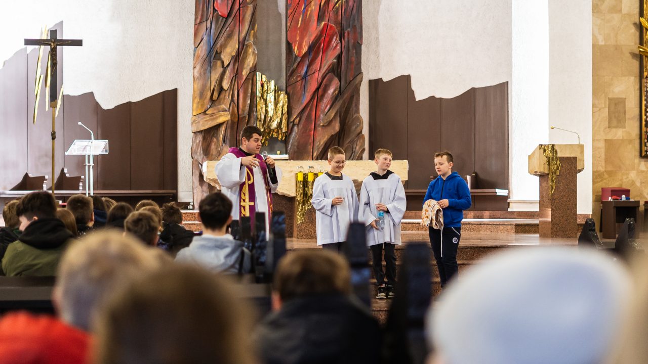 Dzisiaj w naszej parafii odbyły się rekolekcje szkolne dla uczniów Szkoły Podstawowej nr 10 im. Wojska Polskiego w Jarosławiu. Uczniowie zostali podzieleni na dwie grupy wiekowe, w dniu dzisiejszym udział brali uczniowie starsi, natomiast w dniu jutrzejszym uczniowie młodsi.