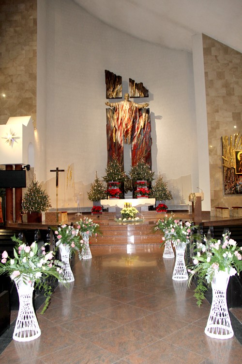 Różne możliwości wykorzystania stojaków na kwiaty w kościele Chrystusa Króla w Jarosławiu