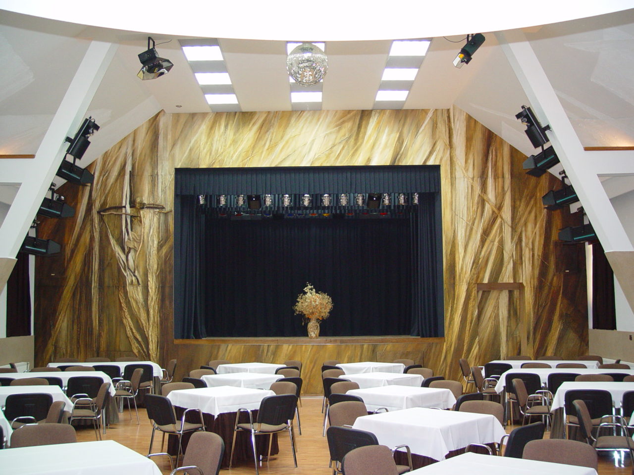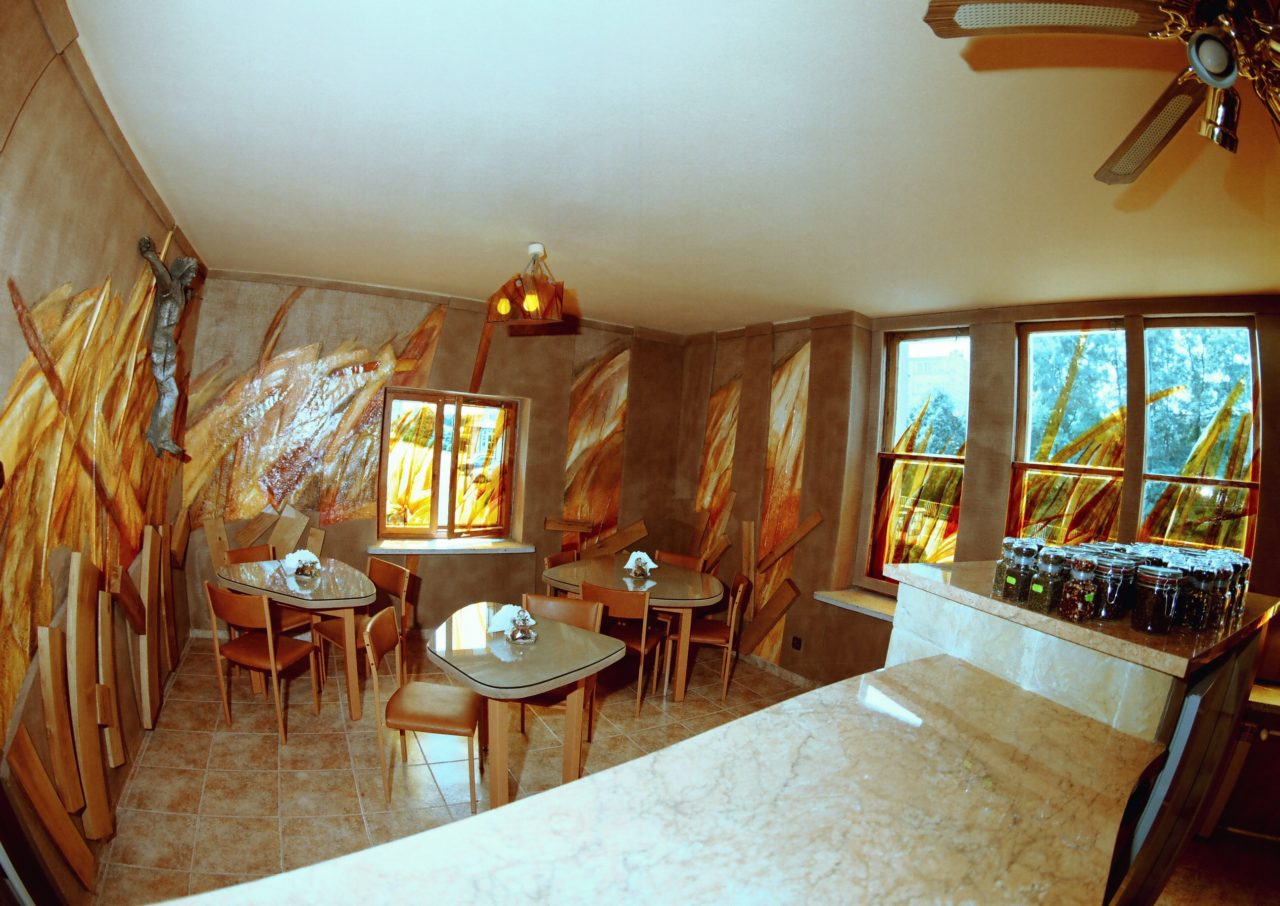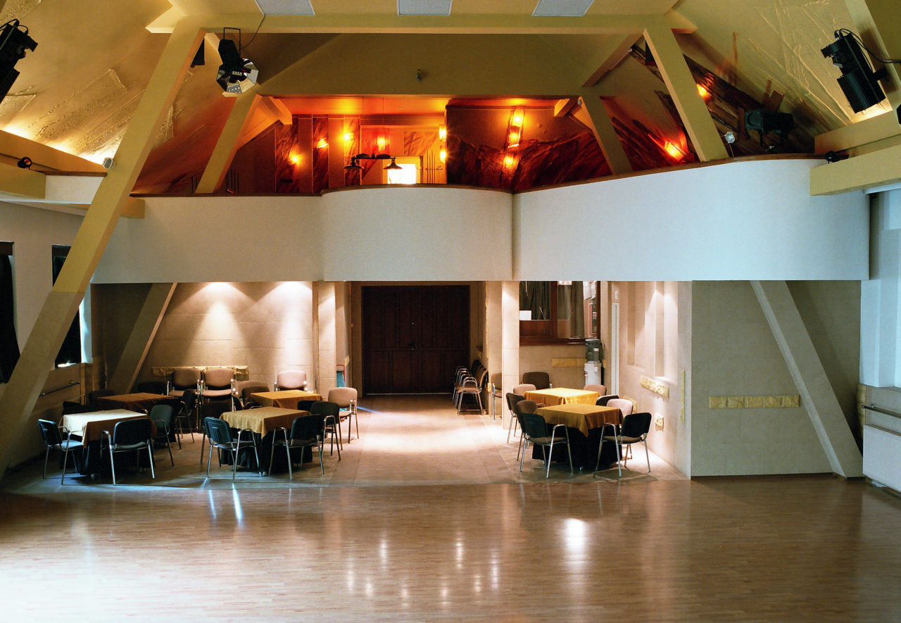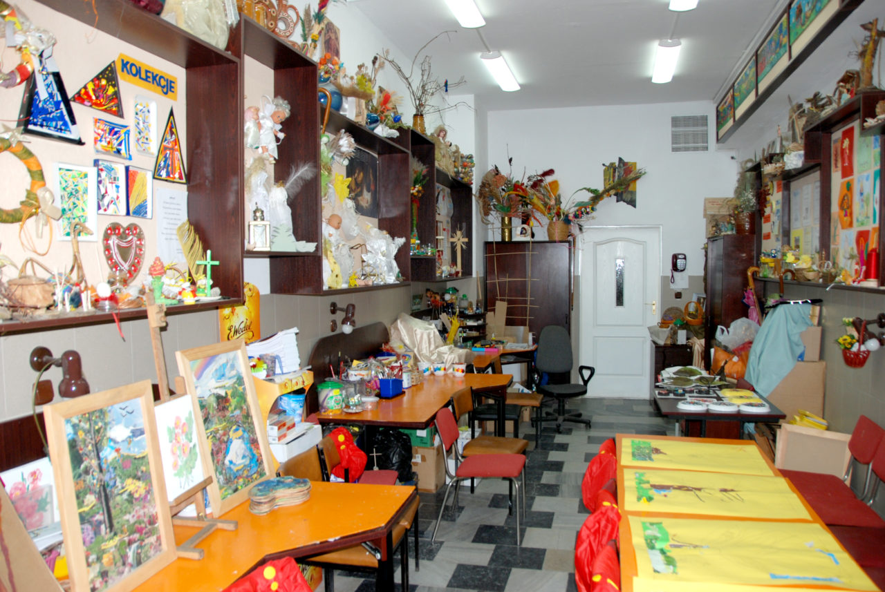 sala komputerowa, sala lustrzana, sala muzyczna, sala oazowa, sala rycerska, pracownia plastyczna, pracownia modelarska, biblioteka, galeria